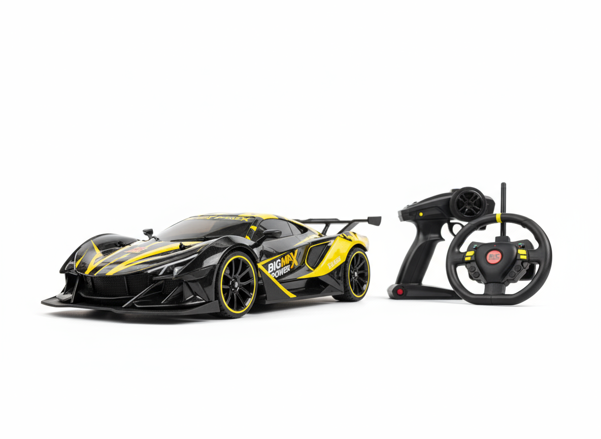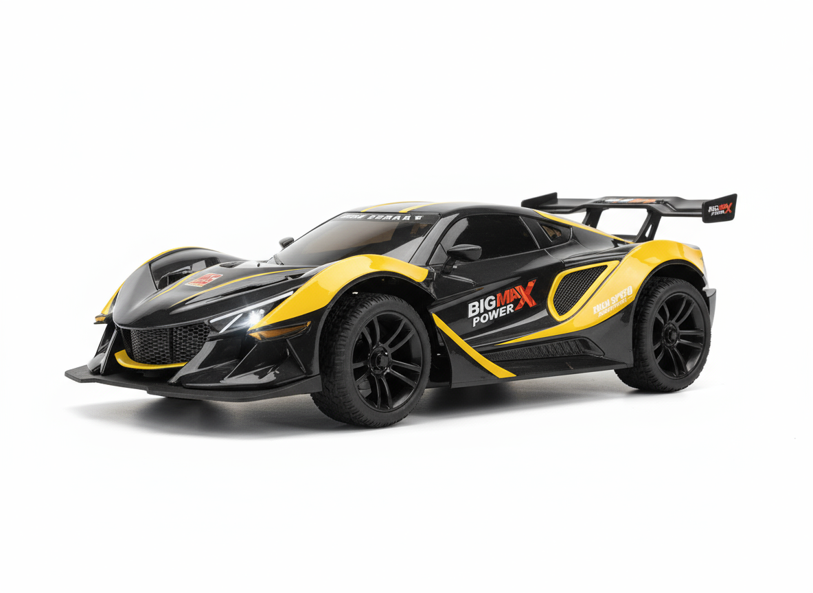 Oslobodite snagu brzine sa ovim impresivnim Big Max Power RC trkaćim autom! Ovaj crno-žuti sportski automobil u skali 1:16 dizajniran je za maksimalne performanse i uzbudljivu trkaću akciju.