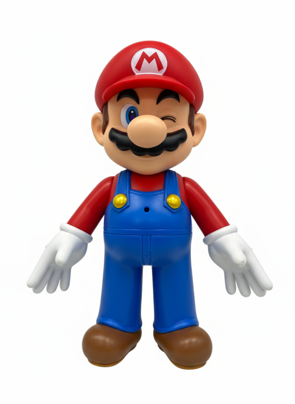 Figura je detaljno dizajnirana sa Marijevim prepoznatljivim crvenim šeširom sa slovom ‘M’, plavim pantalonama, belim rukavicama i karakterističnim brkovima. Svaki element je pažljivo osmišljen da odražava autentičan izgled iz igrica.